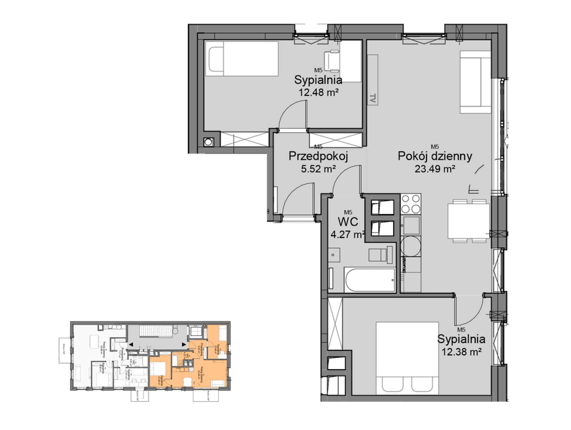 3 pokoje, balkon 3 m², balkon 5 m², opcja „dwupaku” (mieszkania z 2 niezależnymi lokalami pod wynajem)